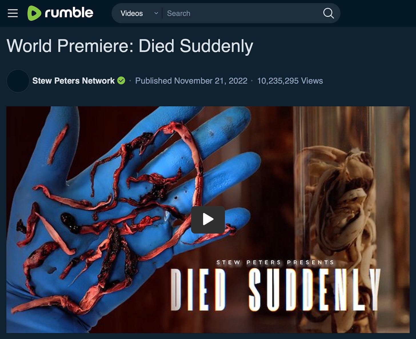Research Videos Died Suddenly Documentary by Stew Peters Mike WersznerNov 30, 2022ShareWhoever you are, whatever your beliefs - please watch this documentary. Official website: source: https://diedsuddenly.info | Stew Peters Network Rumble: source: Rumble | Stew Peters Network
